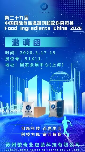 Suzhou Jingle Ambalaj Teknolojisi Co, Ltd önümüzdeki fuara katılacağını duyurmaktan mutluluk duyuyor Gıda İçerikleri Çin 2026 sergi. Etkinlik şu tarihten itibaren gerçekleşecek: 17 - 19 Mart 2026 en Ulusal Sergi ve Kongre Merkezi (Şanghay) . Ziyaretçiler şirketin uzman ekibiyle şu adreste tanışabilirler: Stand 51X11 Kapsamlı paketleme çözümlerini keşfetmek ve potansiyel işbirliklerini tartışmak.